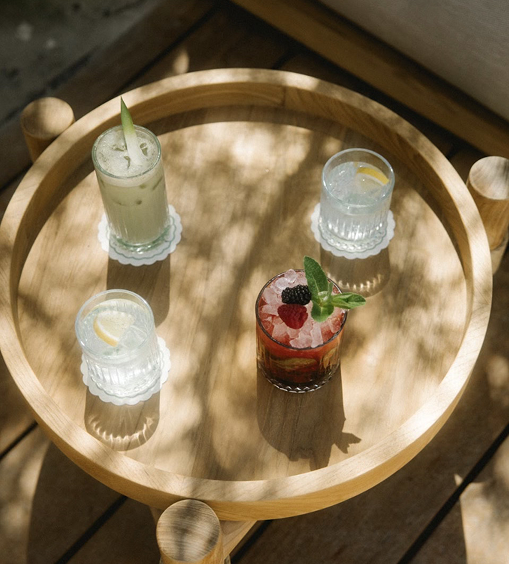 Sur la plage d’Indie Beach, le temps n’existe pas. Transats & parasols, Sun Beds. Déjeuner face à la mer. Chill & cocktails. Invitation au lâcher-prise.